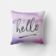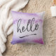 hello hand-lettered violet watercolour pillow