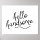 This darling poster will be a perfect compliment to the decor in your home. This design features the quote "hello handsome" in a handwritten black font and is accented with a black swish. This would make a great addition to a gallery wall.
