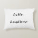 This "Hello, Handsome" decorative pillow is great on its own or paired with The Happy Nest's "Good Morning, Gorgeous" pillow. Shown in white with black lettering, it is customisable to match your décor. Buy it for yourself or your special someone.