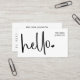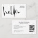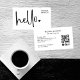 This elegant and customisable "Hello Heart White Script QR Code Social Media Business Card " is designed to leave a lasting impression. Featuring a stylish handwritten script typography with the striking word "Hello" paired with a cute heart design, this card draws attention and sets a friendly tone, exuding warmth and personality. QR code, social media icons (Instagram, Facebook), and WhatsApp are thoughtfully integrated, making it easy for clients and colleagues to connect with you digitally.