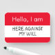 Hello... Here against my will Name Tag