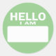 Name tag sticker with "Hello, I Am" can be used to write in a person's name, or an adjective, title, or slogan, such as "I Am Single" or "I Am the Event Planner". These can lead to a lot more fun than just using names at your party or event if you encourage guests to be creative. Also good for identifying people at a wedding or other event, i.e. "I Am...Mother of the Bride".