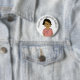 Introduce yourself to your patients or client with this easy to read name button. Cartoon drawing of a Hispanic, Latina or black American female nurse, physical therapist or caregiver of colour in pink scrubs.