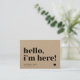 A fun and modern business branding & packing insert card to thank customers for their purchase and offer a discount code promotion for their next order. On front is a modern minimalist typography design that says "hello i'm here" in a modern serif font with a cute black heart at bottom and your business name and website. On back is a fully customisable message thanking your customer a discount code. Perfect for makers, diy crafts, business packing insert and more. ©Marisu Valencia