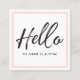 Hello Introduction Brush Script & Pink Frame Square Business Card