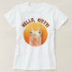 Cat design with the words “Hello, Kitty!” Laughing cat with retro sun in the background.