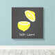 Cute original grahphic design of a lemon cut in half. Hello lemon fruit art modern trendy fruity fun. Lemon white and grey theme.