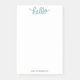A fun, modern 4x6 Post-it® Note notepad design featuring quirky "hello" hand lettering at the top, with an area at the bottom for you to personalise the notes with your name.