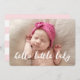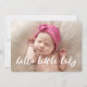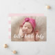 Announce the birth of your baby girl with a beautiful "Hello Little Lady" photo birth announcement. The stylish birth announcement features an overlay with the words "Hello Little Lady" in a brush script font, placeholders for a photo and custom text, and a blush pink and white striped pattern on the back of the card. Change the background colour to a custom colour by using the "Customise" tool.