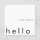 This Hello Minimalist Simple Custom Professional Square Business Card showcases a clean, simple white design with a bold and modern "Hello". Its minimalist black and white colour scheme and large typography reflect Scandinavian-inspired elegance, perfect for a professional yet informal introduction. The casual yet refined style makes it ideal for small businesses, creative professionals, or anyone looking to make a sleek first impression. Customise yours today for a personalised, unforgettable touch!
