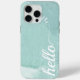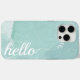 Your Name or Quote Typography Hello Mint Linen Pattern Phone Case