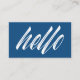 Hello Modern White Script on Blue Business Card