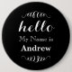 Modern Hello Cute Colourful My name is Personalised Black or any custom colour Hello Button - click customise to change colour
