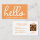 Hello My Name Is Tangerine Orange White Minimal Business Card