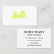 Hello Neon Chartreuse Yellow Black White Modern Business Card