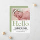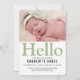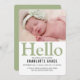 Hello New Baby green Personalised modern announcements from Ricaso - available in a range of styles and colours in store - change the text and photo to your own