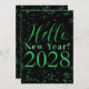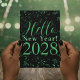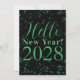 Hello New Year! Happy New Year Green Black Sparkle Holiday Card