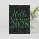 Hello New Year! New Year's Eve Green Black Sparkle Invitation