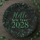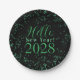 Hello New Year! New Year's Eve Green Black Sparkle Paper Plate