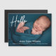 Customise this magnetic baby announcement card with your newborn child's photo and details. Being a magnetic card is an easy way for family and friends to display and cherish this special moment. The words 'Hello' in modern script font adds a touch of elegance.