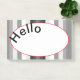 Custom large post it note with a modern grey and black stripe and an accent of red that can be personalised to any colour. The hello text can be switched to a name to personalise. Great office gift idea.