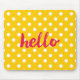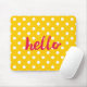 Hello on pastel yellow polka dots background mouse mat