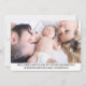 The back of the card features a second photo template to personalise with a family or siblings photograph, or with a further picture of the newborn baby boy. The white band on the lower part is personalizable with further details or custom messages in a dark grey elegant font.