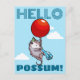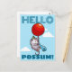 Hello Possum! Floating Party Opossum Red Balloon Postcard