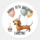 Celebrate birthdays in style with this adorable personalised dachshund-themed sticker! Perfect for adding a fun and unique touch to gift wrapping, party favours, or decorations. Customise with a name or special message to make it extra special for the recipient.