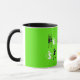Hello Spring Cute Cartoon Text Black and White on Bright Green Background Coffee Mug