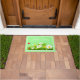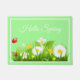 Doormat shown with a light green colour background and white border with a hello spring text and a lovely flowers print.