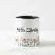 A cute and fresh floral mug featuring the quote “Hello Spring”.