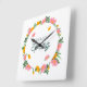 Hello Spring Floral Wreath Square Wall Clock