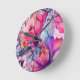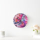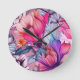 Hello Spring Happiness Time, Floral Pink Butterfly Round Clock