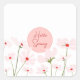 Say Hello Spring as light as air pink cosmos flowers with bright red centres and delicate green stems twirl and spin on a crisp white background. Hello Spring has a casual handwritten style in a red font that can be customised easily by clicking the Personalise button.