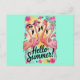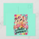 Hello Summer Cute Flamingo Beach Vacation Tropical Postcard