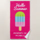 Hello summer cute popsicle ice cream hot neon pink custom beach towel. Personalised beachtowel with elegant typography and bright coloured ice cream. Add your own funny quote, name or monogram letters. Cool Birthday gift idea for wife, girl, daughter, friend, aunt, grandma, sister, wedding bride, bridesmaid, lady boss, retiree etc. Fun summer accessories for beach or pool. Cheerful design with customisable background colour. Presents for her. Also nice for honeymooners.