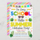 Makes a great invitation to celebrate the end of school and kick off the summer season. Invite works great for classroom, school or PTO/PTA sponsored school party events! Start off the summer with a festive and colourful message.