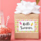 A sticker with an image of a summertime pattern of popsicles and ice cream in watercolors. Hello Summer written in a fun trendy font.