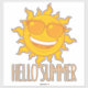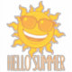 Vector cartoon sun character wearing sunglasses with Hello Summer text. Great for summertime. Keywords: beach, blazing, cartoon, cheerful, fire, flame, friendly, glasses, happy, heat, hot, humour, illustration, season, seasonal, shades, smile, star, summer, sun, sunglasses, vacation, vector, weather, icon, summertime
