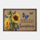 Hello Sunshine Blue Butterfly Vs Sunflower Doormat