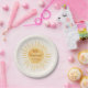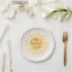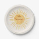 These Baby Shower Paper Plates are decorated with a watercolor sun and stylish typography on a cream background.