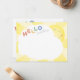 Send sunshine to someone you love with this illustrated sunshine note card featuring colourful, rainbow text saying "HELLO sunshine". Matching note card, postcard and additional items available by Janelle Wourms Design.