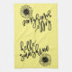 Brighten up your kitchen with our hello sunshine kitchen towel accented with a sunflower.