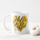 Coffee enthusiast's mugs for enjoying their favourite brew. A gold glittery heart background with smaller gold hearts and a lovely fancy typography script in black. Charming coffee mugs for your daily caffeine fix. Well hello there, coffee. How you doin'?