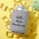 "Hello there handsome" rustic chic faux jute linen burlap shabby cottage chic country french style decor can drink cooler with saying.