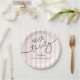 This 30th birthday party paper plate showcases modern script typography reading “Hello Thirty,” complemented by a soft pink and white striped background. It's simple yet stylish design makes it a perfect addition to her celebration party.