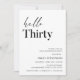 Hello Thirty Modern White Minimalist 30th Birthday Invitation