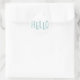Round sticker with “HELLO” typography greeting in light blue for your decorating, gift wrapping, sealing your envelopes.