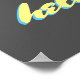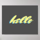 Hello typography word art poster has yellow and blue bold letters on charcoal grey background for trendy modern decor in home or office.